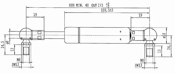 Plynová vzpěra L173,0 mm 150 N, Stabilus