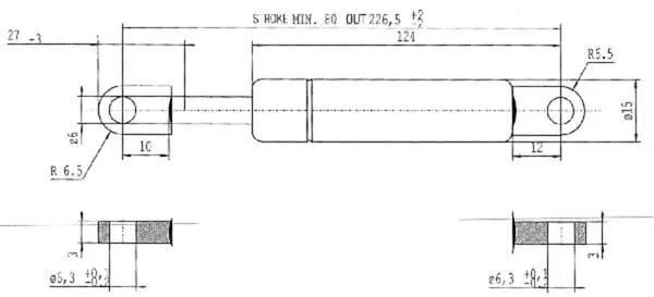 Plynová vzpěra L226,5 mm 250 N, Stabilus