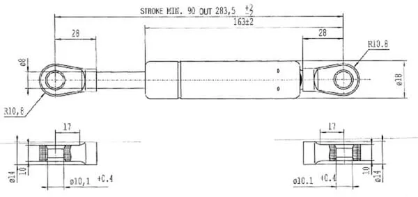 Popis výrobku Plynové vzpěry, typ B