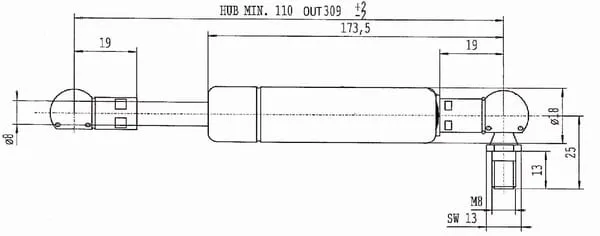 Plynová vzpěra L309,0 mm 270 N, Stabilus