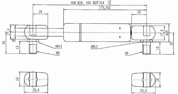 Plynová vzpěra L318,0 mm 280 N, Stabilus