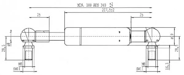Plynová vzpěra L340,0 mm 100 N, Stabilus