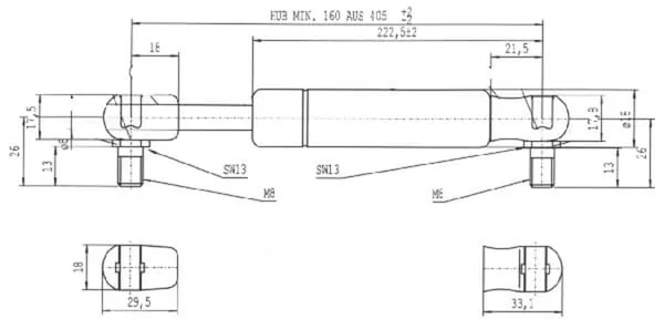 Plynová vzpěra L405,0 mm 250 N, Stabilus