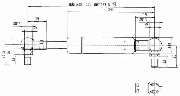 Plynová vzpěra L423,5 mm 100 N, Stabilus