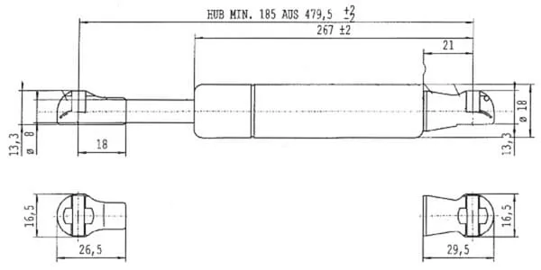 | Popis výrobku | Plynové vzpěry, typ C |