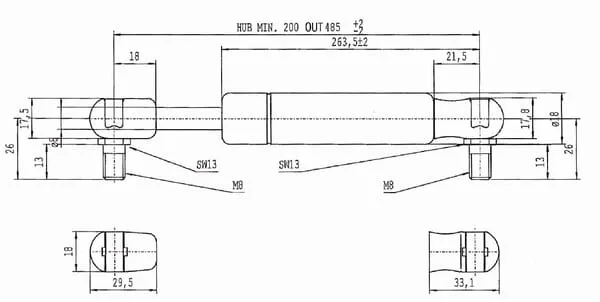 Plynová vzpěra L485,0 mm 200 N, Stabilus