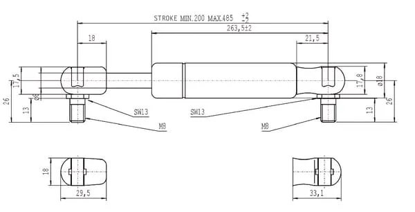 Popis výrobku Plynové vzpěry, typ C