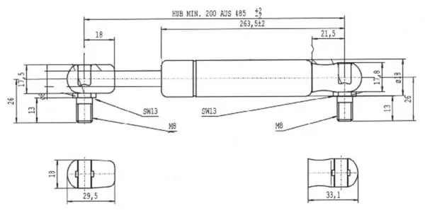 Plynová vzpěra L485,0 mm 500 N, Stabilus