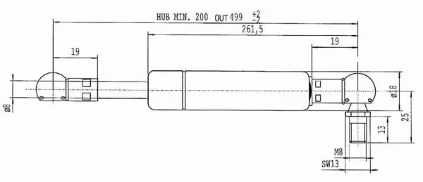 Plynová vzpěra L499,0 mm 170 N, Stabilus