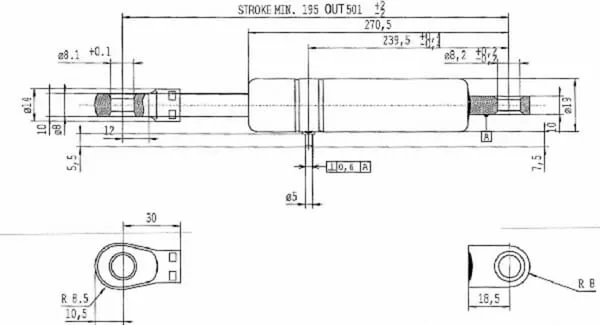Popis výrobku Plynové vzpěry, typ B