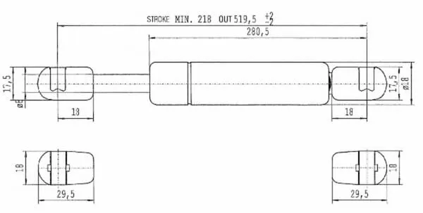 Plynová vzpěra L519,5 mm 200 N, Stabilus
