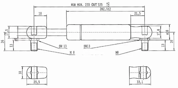 Popis výrobku Plynové vzpěry, typ C