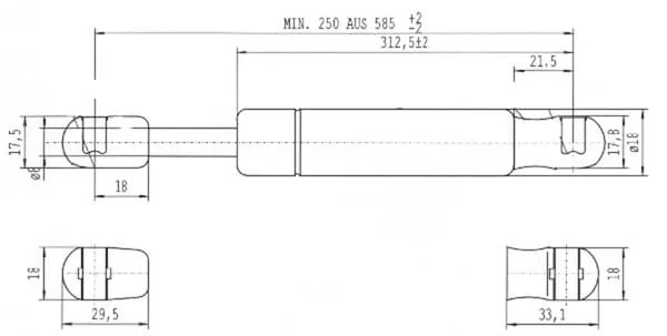 Plynová vzpěra L585,0 mm 250 N, Stabilus