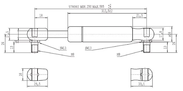 Popis výrobku Plynové vzpěry, typ C