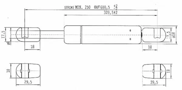 Plynová vzpěra L600,5 mm 210 N, Stabilus