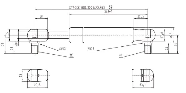 | Popis výrobku | Plynové vzpěry, typ C |