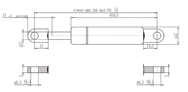 Popis výrobku Plynové vzpěry, typ B