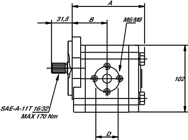 14,53 cm³/rev | SAE-A | S1 | 2 | Drážkované 11T | 07 | 19 mm | n/a | 11 | n/a | Standardní | 250 BAR | 280 BAR | 300 BAR | 500 r/min | Pravotočivé (CW) | 106,2 mm | Boční | Hliník | Hliník | 82,55 mm | 2 | |