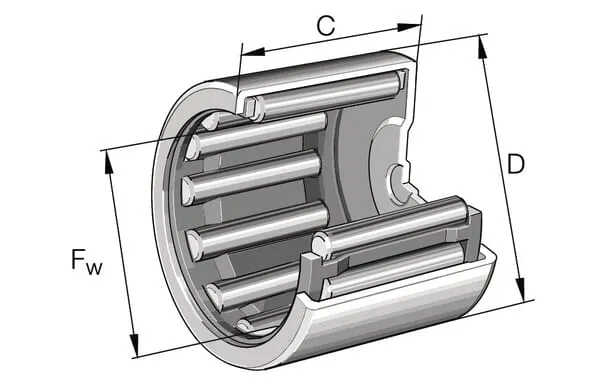 | Typ modelu ložiska | Jehlová válečková ložiska s taženým pouzdrem a uzavřeným koncem |