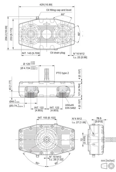 Vlastnosti Předsazená převodovka těžké řady pro 2 zubová čerpadla nebo pístová čerpadla (SAE A/B nebo skupina 3)