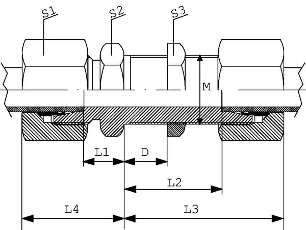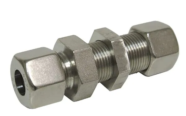 Přepážkové spojky z nerezové oceli, metrické šroubení s řezným kroužkem x metrické šroubení s řezným kroužkem