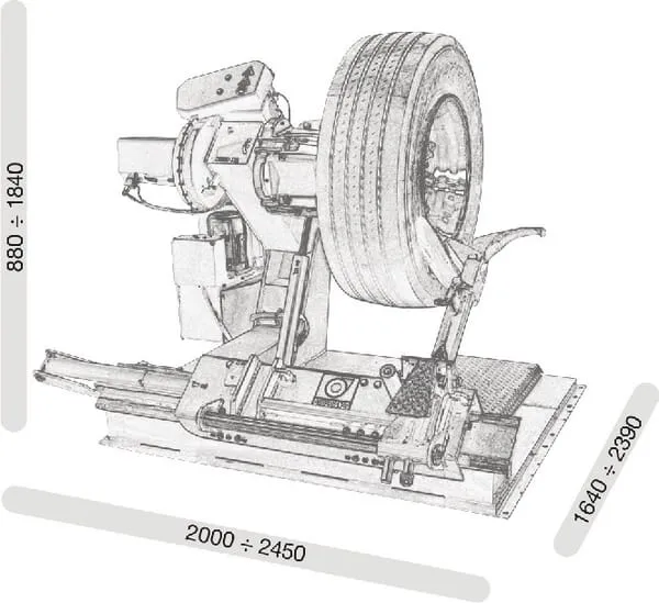 Technická informace Pro ráfky 47″ až 56″ je nutné použít volitelnou sadu se 4 rozšířeními čelistí pro upínací kola od 47″ do 56″