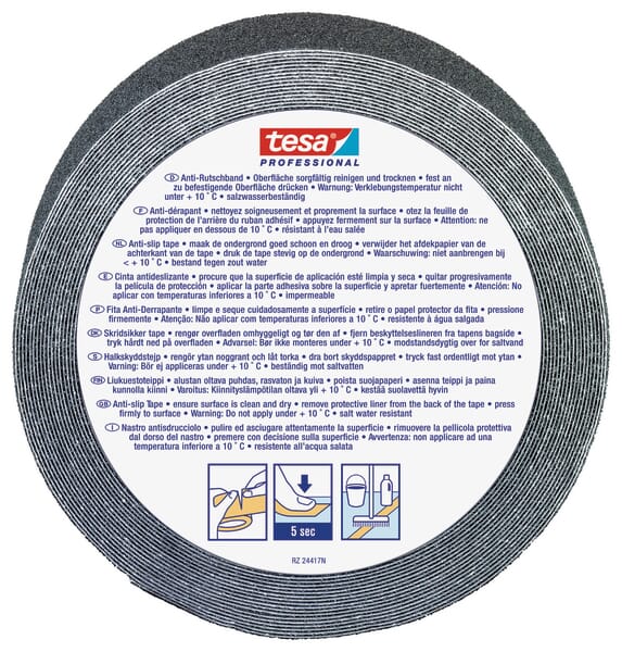 | Popis výrobku | Tato protiskluzová páska je vhodná všude tam, kde je potřeba bezpečně došlápnout bez rizika uklouznutí. Páska je vyrobena z PVC s povrchem z oxidu hlinitého, což zaručuje až dva roky použití, za běžných podmínek. Je vysoce odolná proti opotřebení, čisticím prostředkům a slané vodě a současně vhodná k proděravění. Pásku lze snadno odtrhnout rukou; její silná akrylátová adhezní vrstva zajišťuje velmi dobrou přilnavost k povrchu. |