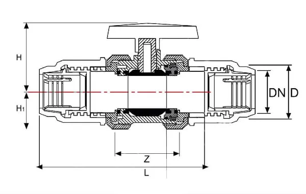 PVC-U Kulové kohout – Převlečná matice (PE) x Převlečná matice (PE)