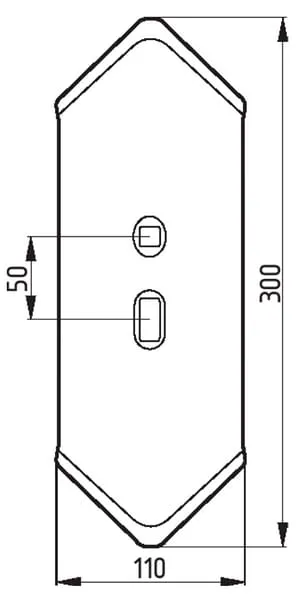 Radlice kultivátoru 300x110x8 mm, otočná, zahnutá, 2 otvory