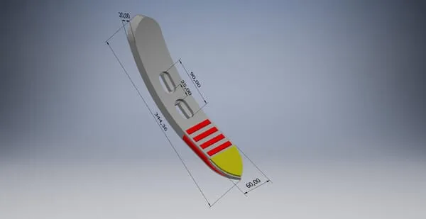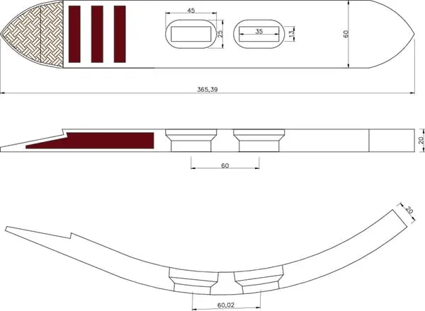 Radlice kultivátoru 360x60x20 mm, tvrzená, zahnutá, 2 otvory