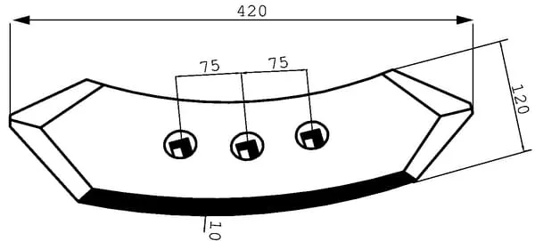 Radlice kultivátoru 420x120x10 mm, otočná, zahnutá, 3 otvory, vhodná pro Dalbo