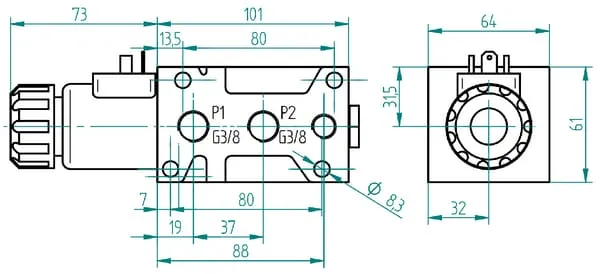 Regulační ventil 6/2 24V přírubový šroub