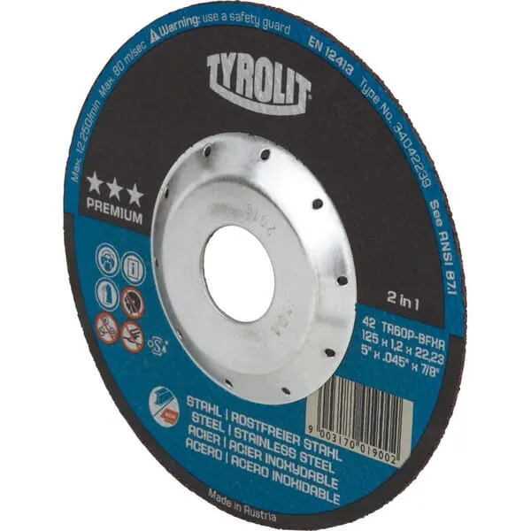 Popis výrobku Prémiové řezné kotouče Tyrolit s ochranou proti hlubokým řezům, která zabraňuje vylomení.