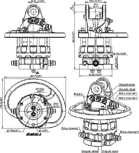 • GR-DB = rotátor drapáku s dvojitým ložiskem pro axiální zatížení při tažení i tlačení