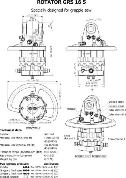 • GR-DB = rotátor drapáku s dvojitým ložiskem pro axiální zatížení při tažení i tlačení