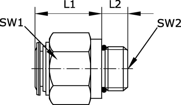 Rovné zásuvné spojení s válcovým vnějším závitem a vnitřním a vnějším šestihranem – typ SCS..B