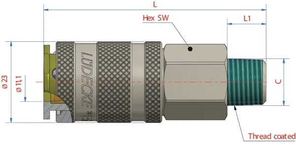 L1Délka závitu připojení číslo 2 17 mm