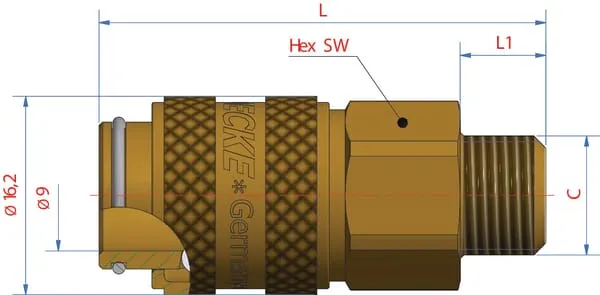 L1Délka závitu připojení číslo 2 9 mm