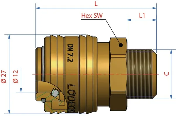 | L1Délka závitu připojení číslo 2 | 7 mm |