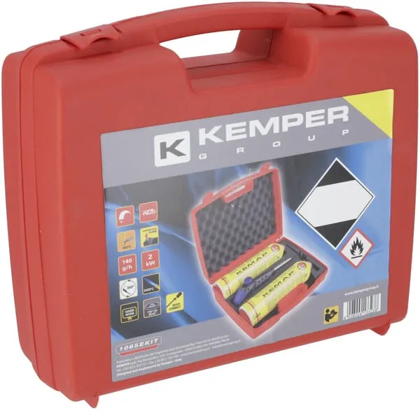 Popis výrobku Tento pájecí hořák je opatřen elektrickým zapalovačem a systémem lapače jisker. Používání je bezpečné; umožŇuje práci v obrácené poloze (vzhůru nohama). Vybaven hlavou Turbo Flame s plamenem ve tvaru vortex zajišťujícím stejnoměrné zahřívání, díky kterému je možné pájet i trubky s větším průměrem.