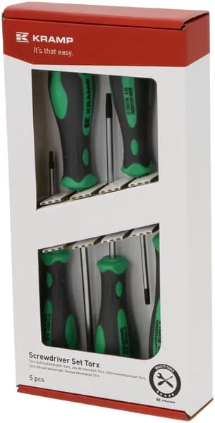 Popis výrobku Sada 5 profesionálních šroubováků Torx se ergonomickými rukojeťmi vyrobenými z dvousložkového plastu pro optimální přenos síly. Rukojeti jsou barevně odlišné pro rychlou identifikaci správného šroubováku.