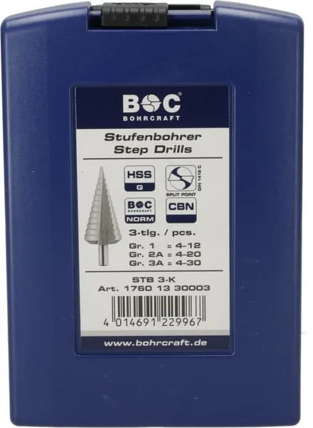 Sada stupňovitých vrtáků, 3 ks