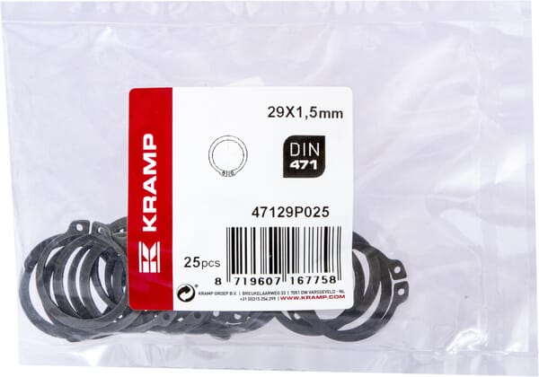 Popis výrobku Kroužky pro hřídele (vnější pojistný kroužek) vyrobené z pružinové oceli, DIN 471.