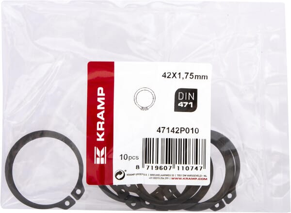Popis výrobku Kroužky pro hřídele (vnější pojistný kroužek) vyrobené z pružinové oceli, DIN 471.