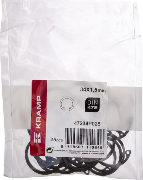 Popis výrobku Pojistný kroužek (vnitřní pojistný kroužek) vyrobený z pružinové oceli, DIN 472.