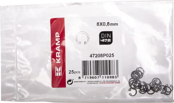 Popis výrobku Pojistný kroužek (vnitřní pojistný kroužek) vyrobený z pružinové oceli, DIN 472.