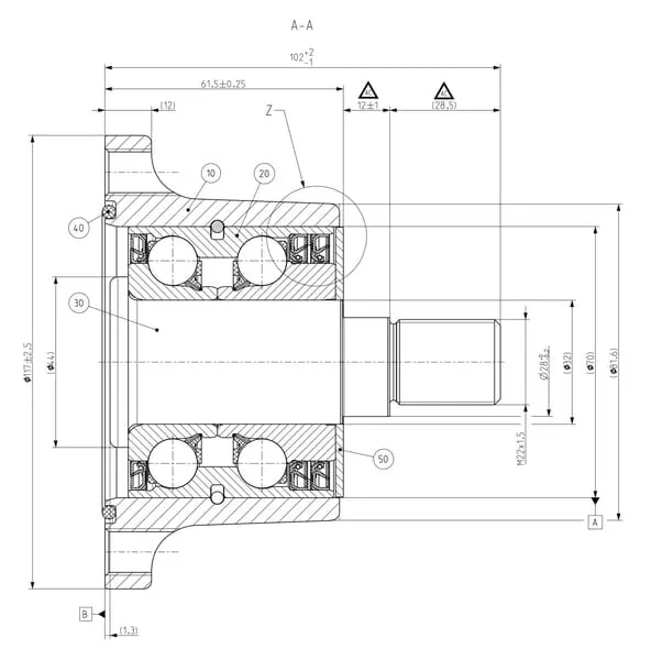 Průměr závitu hřídele M22