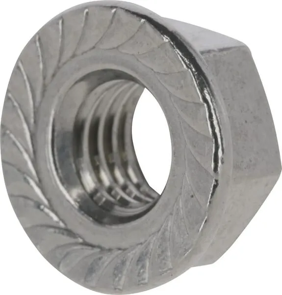 Popis výrobku Šestihranná matice s přírubou s vroubkováním pod přírubou, není nutné používat podložku.
