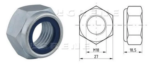 Popis výrobku Pojistná šestihranná matice (protimatice) s nylonovým kroužkem pro zamezení uvolnění způsobeného vibracemi atd. ISO 10511 nahrazuje DIN 985; velikosti klíčů 16, 18 a 21 jsou nyní určeny pro M10, M12 a M14.