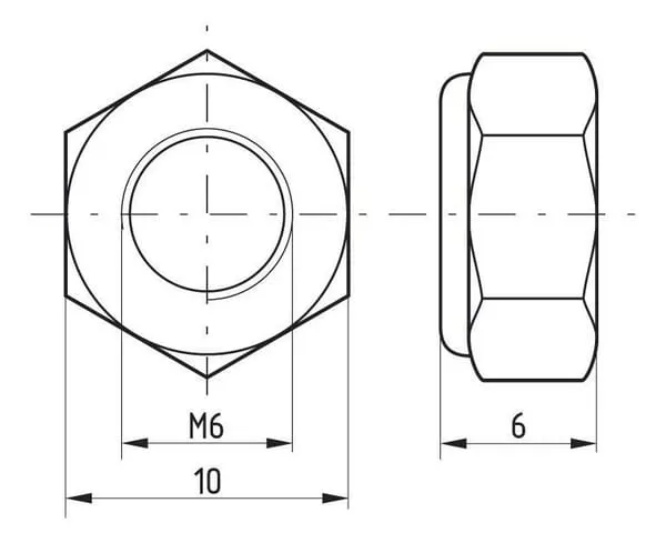 Popis výrobku Pojistná šestihranná matice (protimatice) s nylonovým kroužkem pro zamezení uvolnění způsobeného vibracemi atd. ISO 10511 nahrazuje DIN 985; velikosti klíčů 16, 18 a 21 jsou nyní určeny pro M10, M12 a M14.